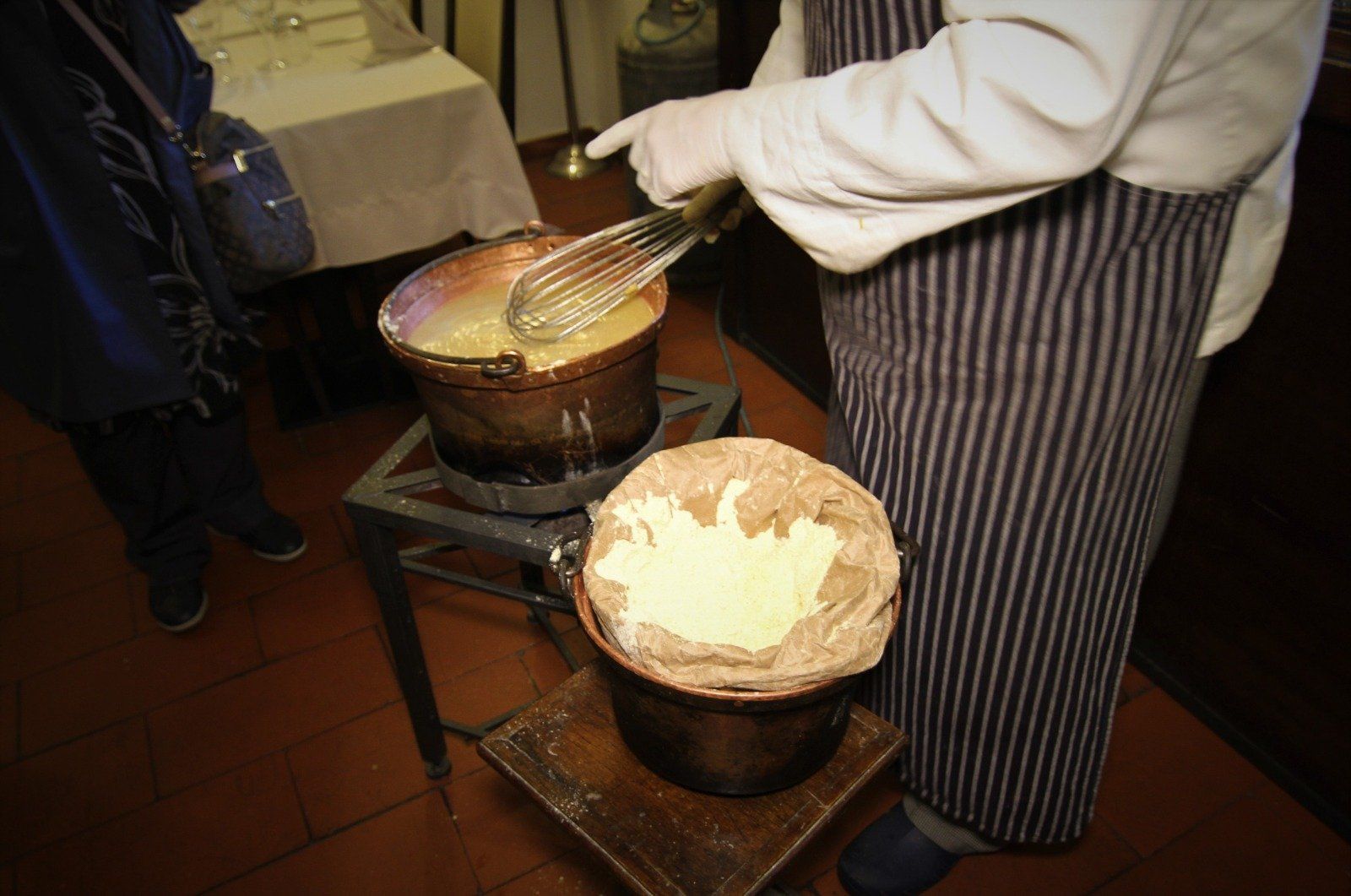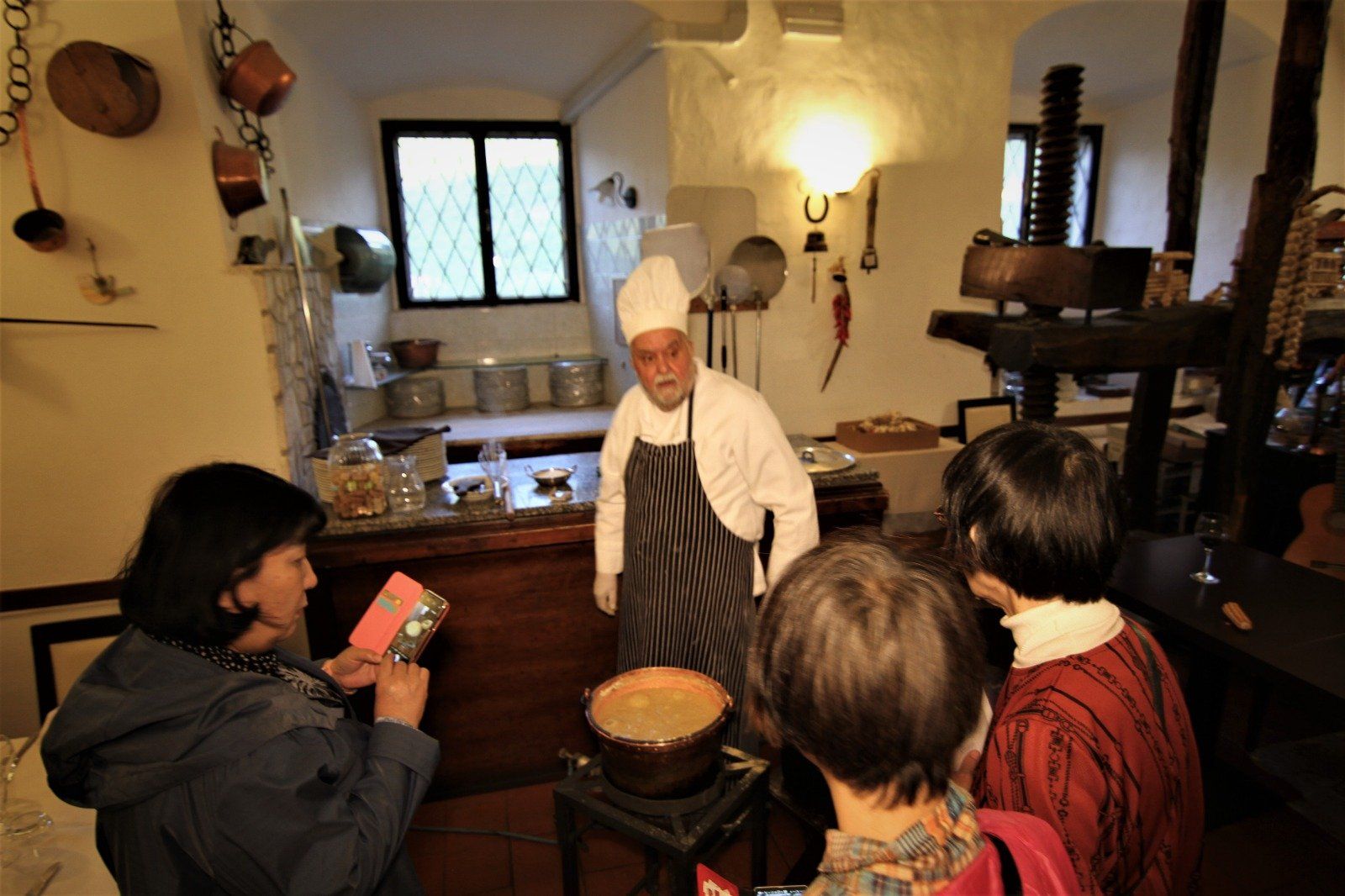 Die handwerkliche Verarbeitung wie früher wird in anderthalb Stunden im Kupfertopf und am Holzpfahl erlernt, um dieses Gericht zuzubereiten.