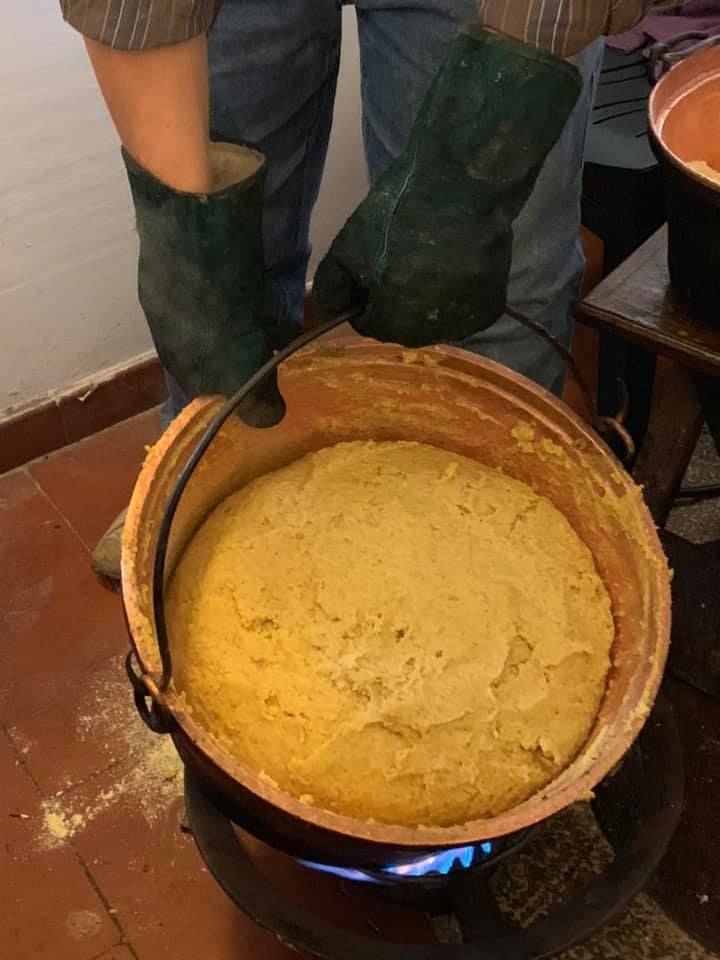 La lavorazione artigianale come una volta all'ora e mezza nella pentola di rame e nel palo di legno, imparerai a creare questo piatto.