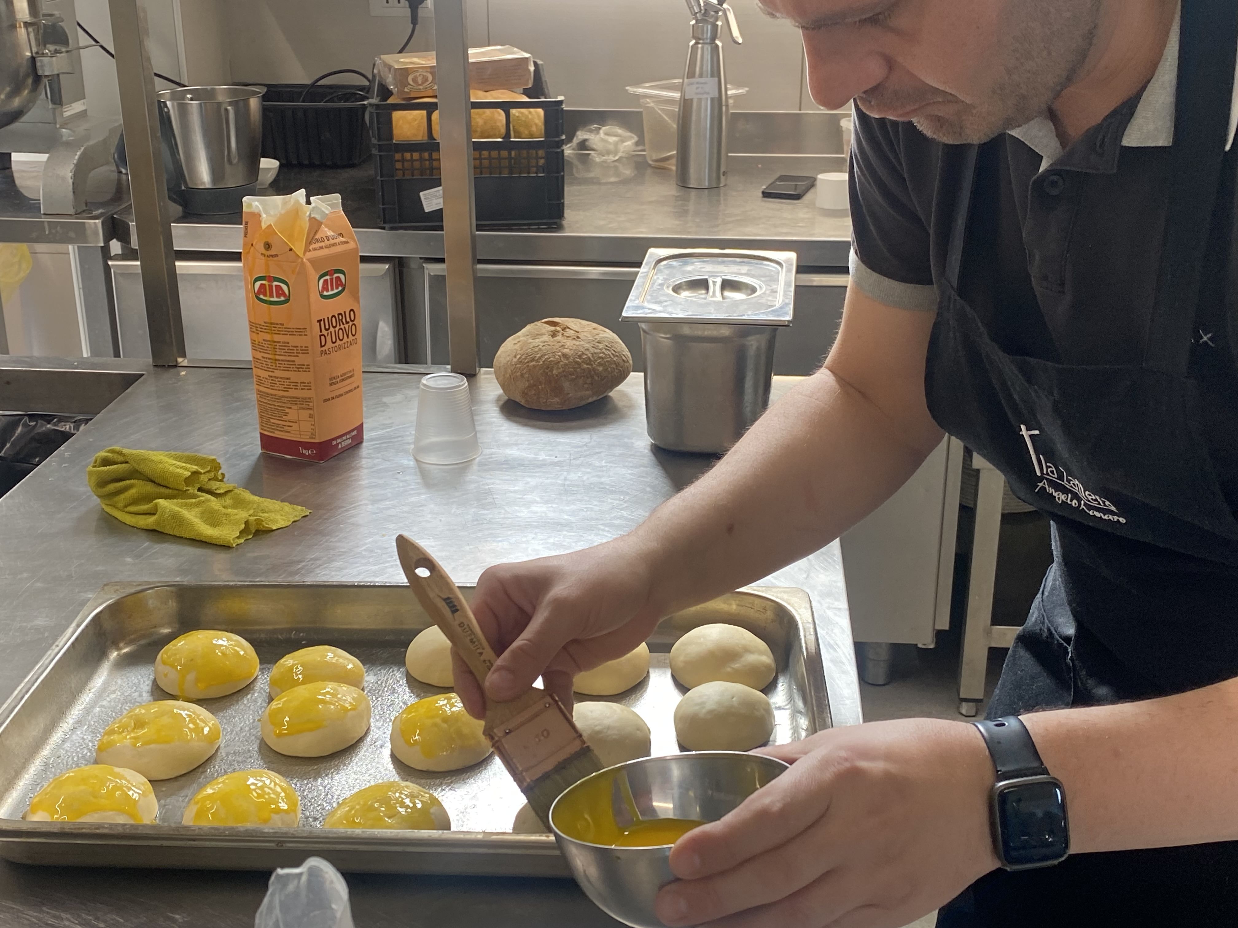 Durante la lezione, avrai l'opportunità di immergerti nell'arte della panificazione, imparando i segreti per creare un pane fragrante e croccante. Lo chef Angelo Lanaro, premiato con 2 forchette dal Gambero Rosso, vi guiderà nella preparazione di questi piatti. Lo chef Lanaro vi guiderà passo dopo passo nel processo di impasto, lievitazione e cottura al forno. Imparerai le tecniche fondamentali per ottenere una consistenza perfetta e un sapore delizioso.